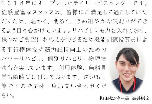 事業所番号 : 介護保険:1373206323 総合事業:13A3200345